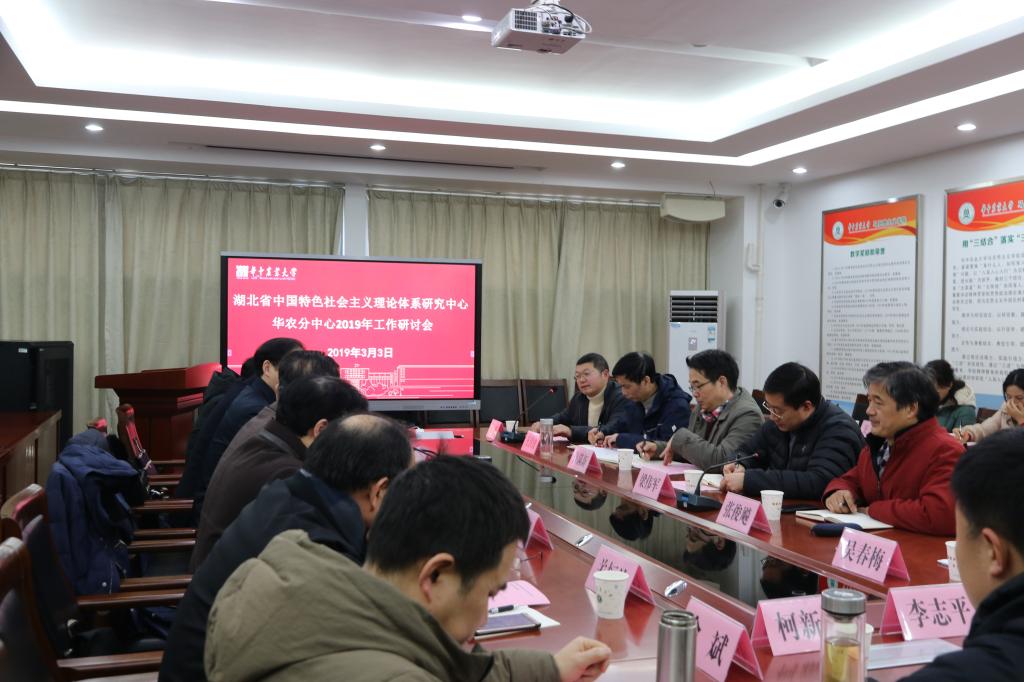 校党委副书记、副校长、中特中心华农分中心主任姚江林进行会议致辞,他首先强调了建设中国特色社会主义理论体系研究中心华农分中心的重要意义。他指出,建设华农分中心、学习研究阐释习近平新时代中国特色社会主义新思想是一项重大的政治任务,必须上升到政治高度,紧握于手,牢记在心。建设好华农分中心,讲好中国故事,发出“湖北声音”“华农声音”,对于建设湖北社科强省、提高学科建设水平、人才培养质量、理论研究能力、社会服务实效等意义重大。他对分中心2018年的工作给予了充分可定,并对2019年的工作提出了明确要求。他强调,分中心要做好年度工作谋划,制定切实可行的工作方案;要突出重点,狠抓落实,责任到人,任务到人;加强内外联系沟通,促进校内人文社科交叉合作,加强与省内分中心及相关媒体沟通协调;争取省委宣传部的大力支持,通过承担委托课题等形式积极拓展外部资源。