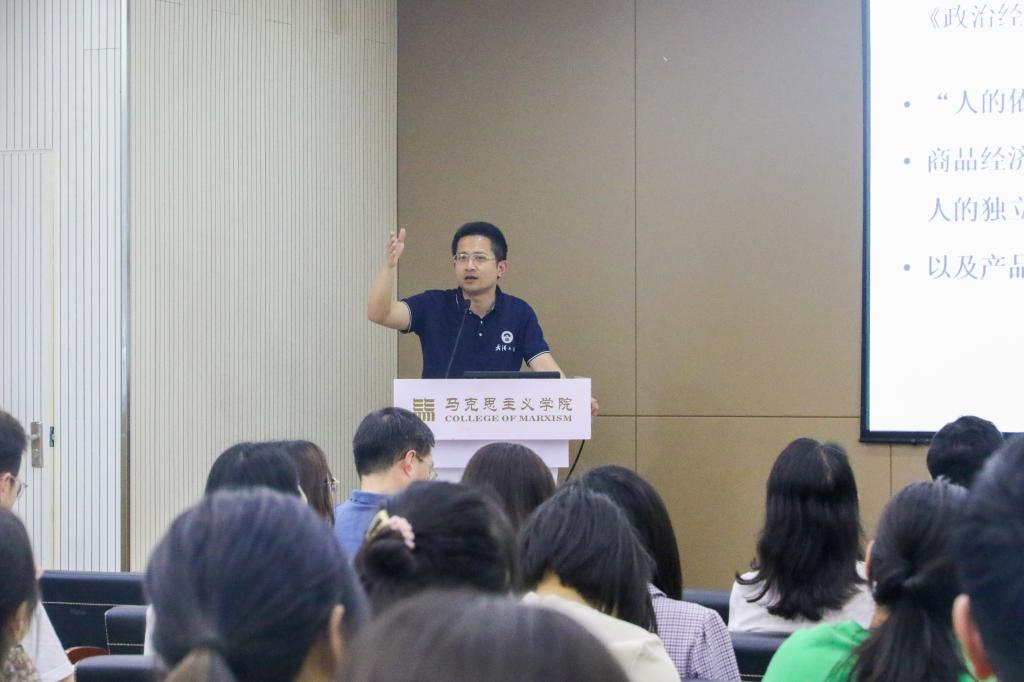 周绍东教授在报告中提出了一系列前瞻性的学术问题:“流水线为什么能够提高生产效率”“如何理解作为一种强制关系的公有资本”“如何从历史范畴把握资本”等,拓展了师生们的研究思路和研究视野。在交流环节中,现场教师和同学们结合当前的研究方向与研究内容,向周教授就“资本主义创造的价值与弊端”“资本无序退出”等问题进行请教、交流,现场气氛热烈,思辨敏捷。