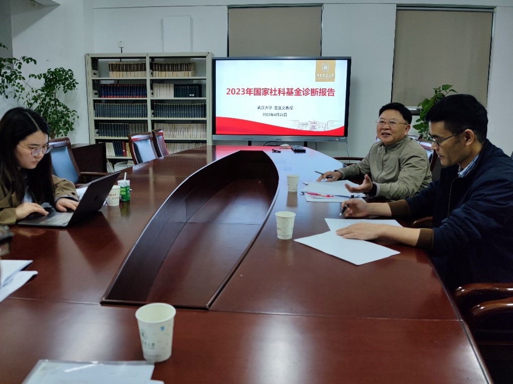 4月23日上午,国家社科基金诊断会在521会议室举行,武汉大学政治与公共管理学院左亚文教授莅临现场进行辅导诊断,我院参与申报国社科的部分教师参加本次诊断会。会议由副院长胡丰顺主持。