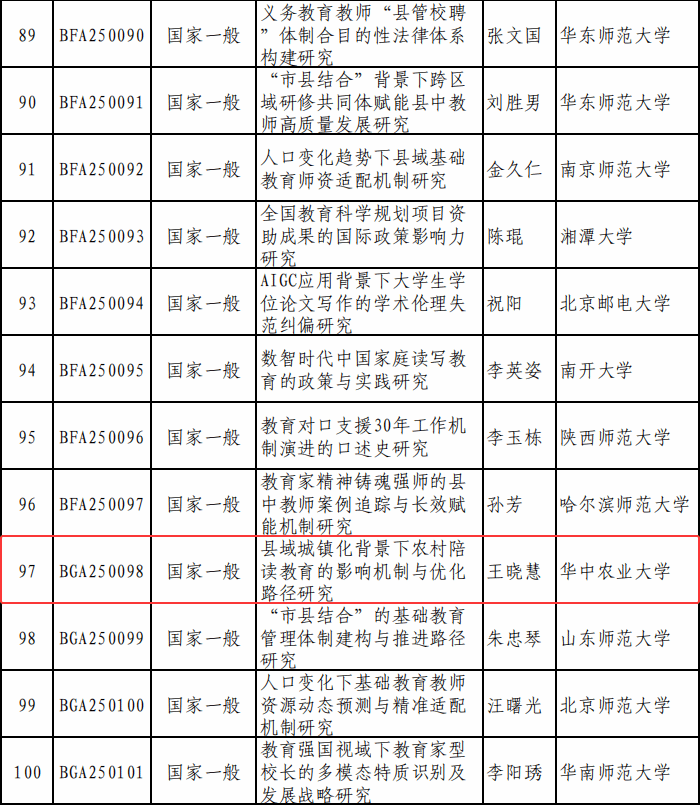 我院王晓慧副教授以《县域城镇化背景下农村陪读教育的影响机制与优化路径研究》为题,获国家社会科学基金教育学一般项目资助20万元。