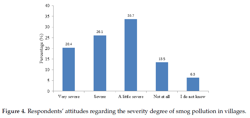 Figure 4. Respondents’ attitudes regarding the severity degree of smog pollution in villages.