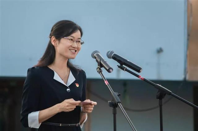 国旗下,该校青年教师代表、365英国上市公司霍慧新老师作题为“为中华复兴而育人”的演讲。