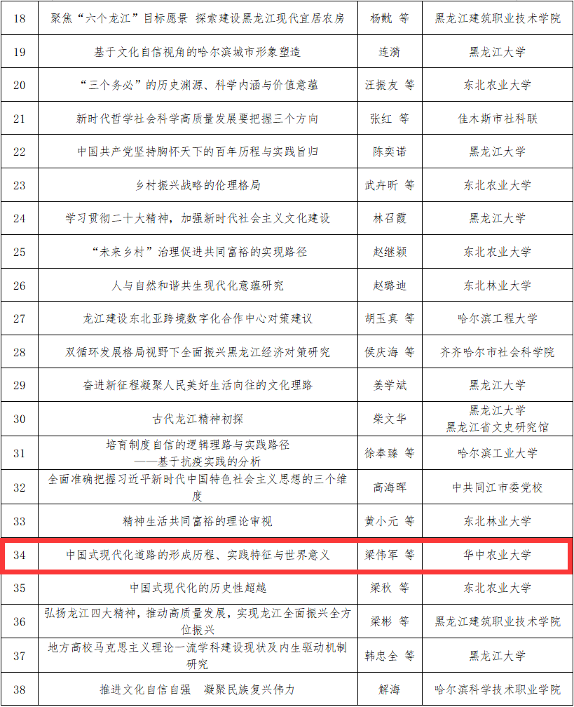2022年12月29日,黑龙江省社会科学界联合会公布了“学习贯彻二十大 砥砺奋进新时代”主题征文活动获奖论文名单,我院梁伟军教授的论文《中国式现代化道路的形成历程、实践特征与世界意义》喜获一等奖。