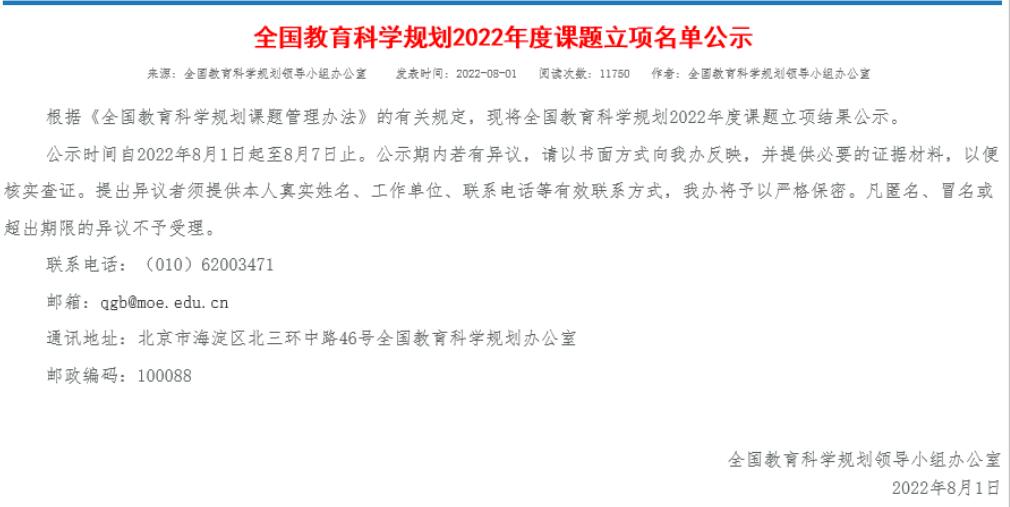 来源:全国教育科学规划领导小组办公室 http://onsgep.moe.edu.cn/edoas2/website7/level3.jsp?infoid=1335260046576122&id=1663030508306625&location=null