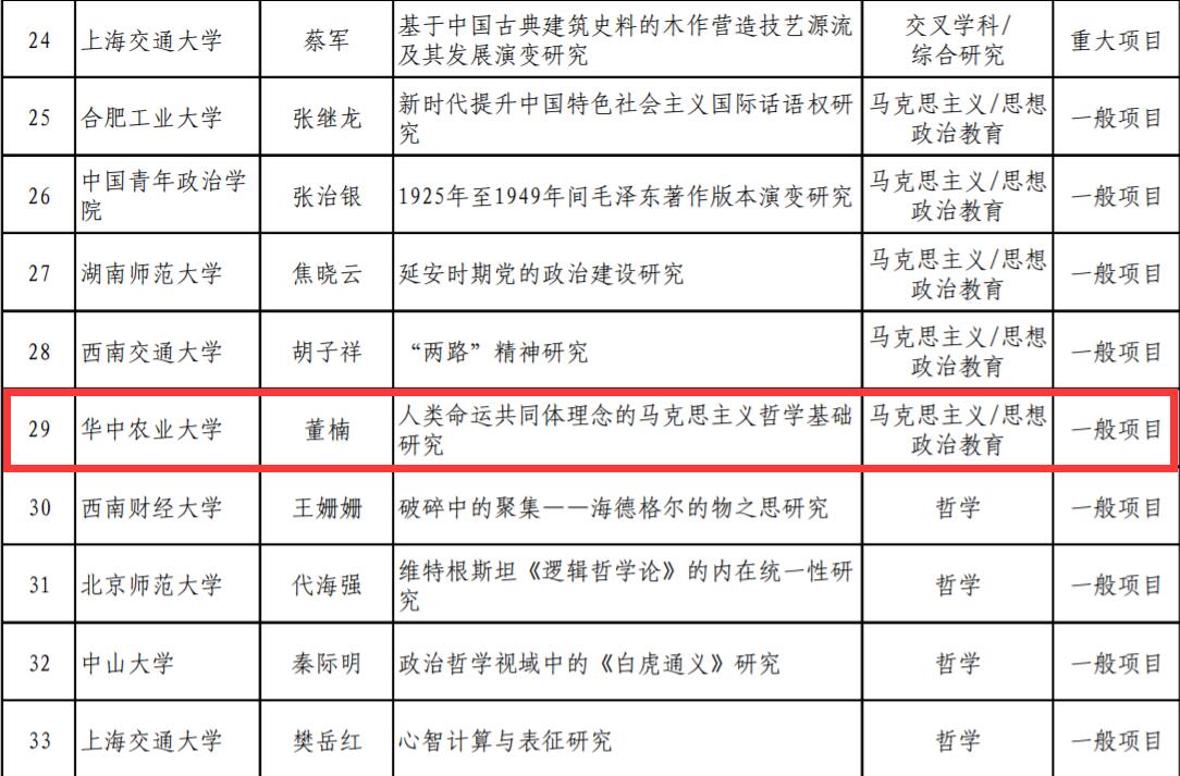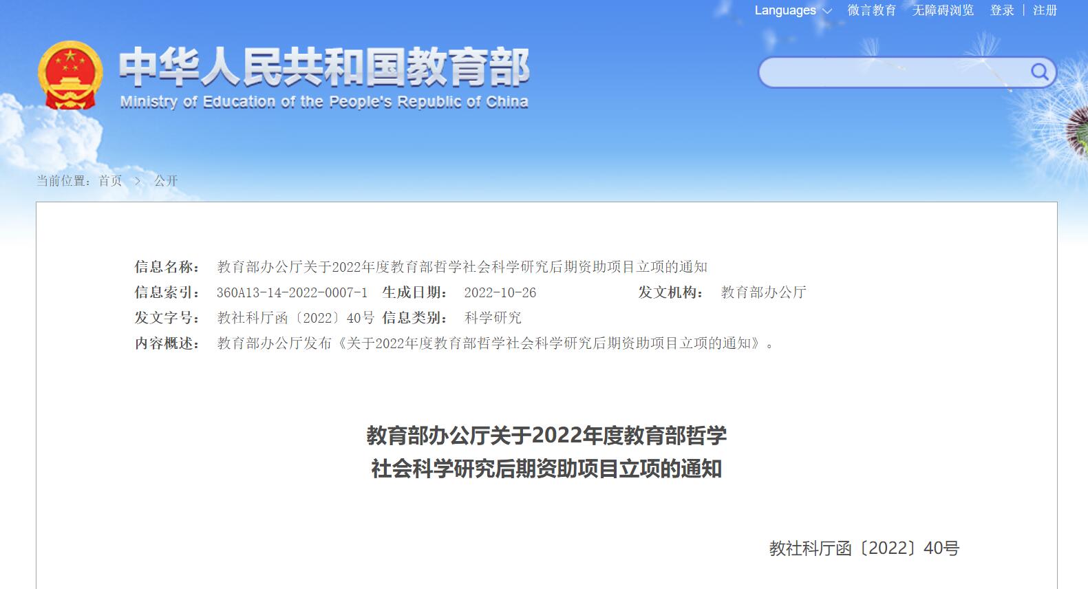 近日,教育部办公厅公布了2022年度教育部哲学社会科学研究后期资助项目评审结果,我院董楠博士《人类命运共同体理念的马克思主义哲学基础研究》获批一般项目立项。