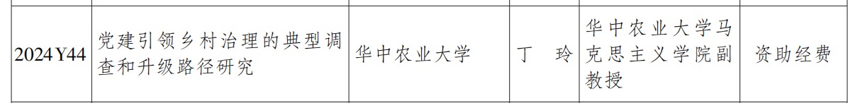 近日,中共湖北省委党的建设工作领导小组办公室、湖北省党的建设研究会发布《关于2024年度湖北省党的建设研究课题立项情况及有关事项的通知》,我院丁玲副教授主持申报的《党建引领乡村治理的典型调查和升级路径研究》成功获批立项。
