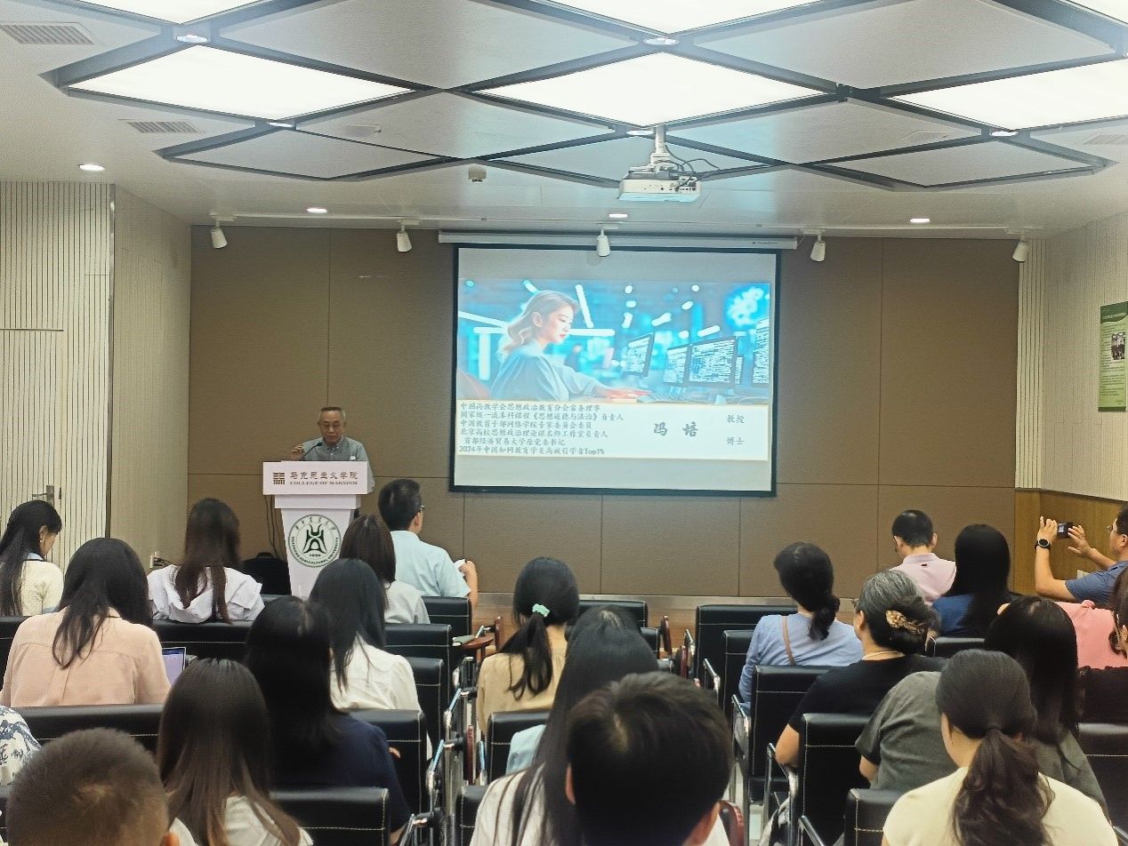 随后,在阐述“研究的基本原则”时,冯培教授提出“小的是美好的”思路,倡导务实、聚焦的研究路径。他提出,研究应注重“边界条件的准确性”和“论证范围的明确性”,从真实、具体的问题切入,实现“论点的产生和论据支持性的统一”。在阐述“研究的愿景呈现”时,他指出,未来的研究应追求“有启示性的思考、有创新性的方法、有可研性的素材、有独特性的路径”。他寄语师生“向未来,再出发”,用思政理论的真实解读碎片世界的真相,在技术变革与思潮激荡中坚守育人初心,持续开拓马克思主义理论教育的新局面。