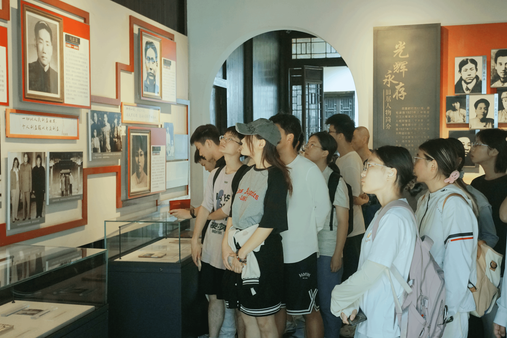 随后,师生们来到中共五大会址纪念馆。展馆通过丰富详实的文献资料、历史照片和实物展品,全面展现了中共五大召开的时代背景、历史任务及深远意义。在参观过程中,同学们了解到,中共五大完善了党的领导机构,将民主集中制确立为党的组织原则,并建立了中国共产党历史上第一个中央纪律检查监督机构—中央监察委员会。