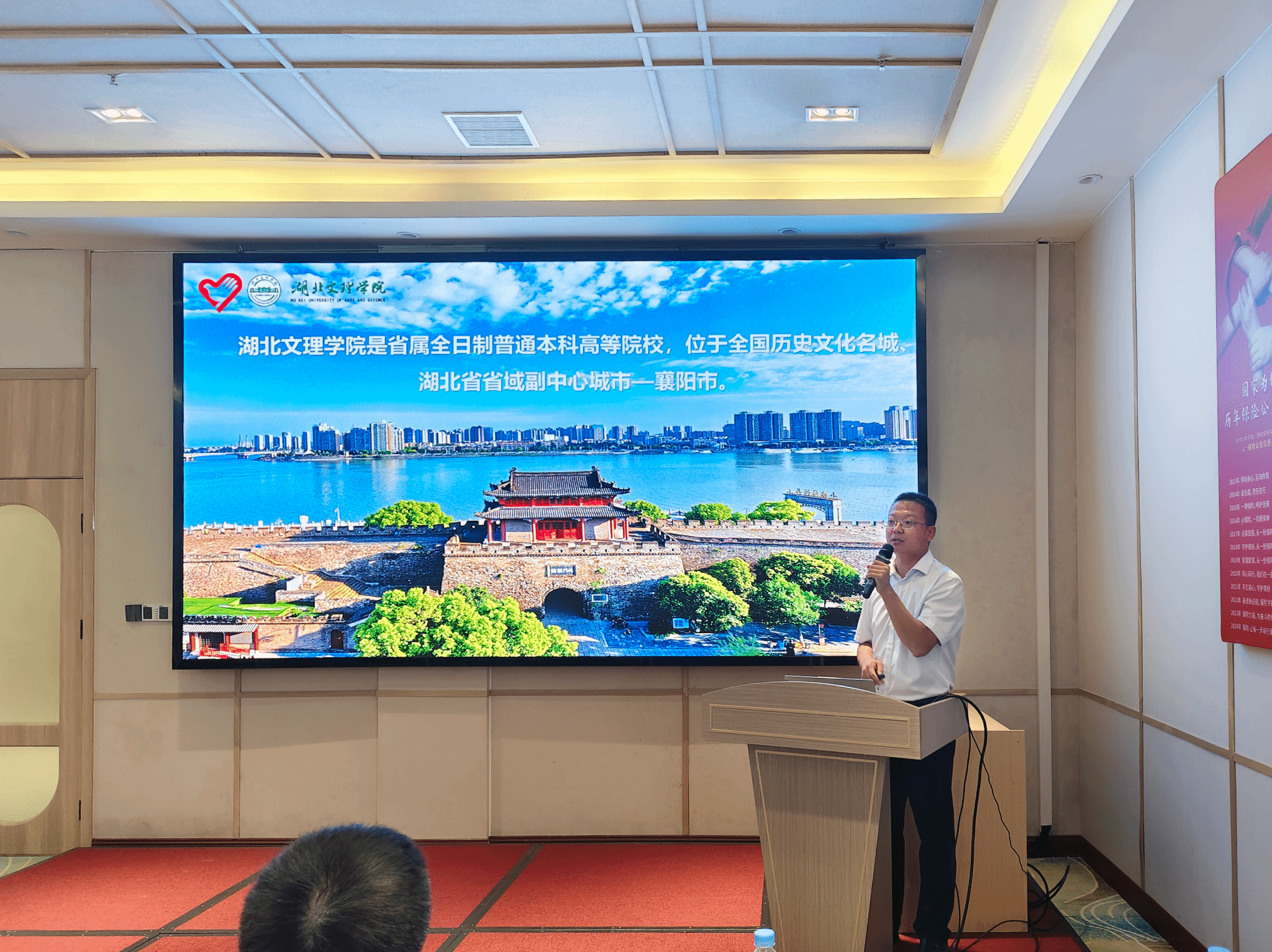 湖北文理学院校团委副书记韩鹏作“校园盛开民族团结的‘格桑花’”分享交流(通讯员 向晓悦 摄)