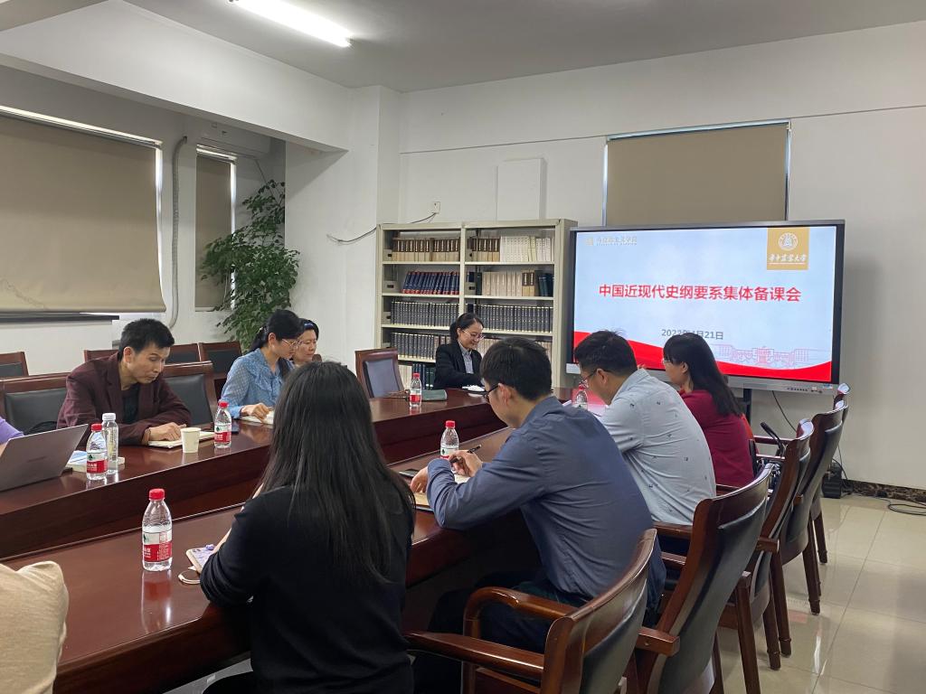 4月21日下午,中国近现代史纲要系集体备课会在创业楼521会议室召开,集体研讨教师教学技能的提高问题。霍军亮副院长出席会议,中国近现代史纲要系全体教师和其他系部分教师代表参加。会议由中国近现代史系主任霍慧新老师主持。