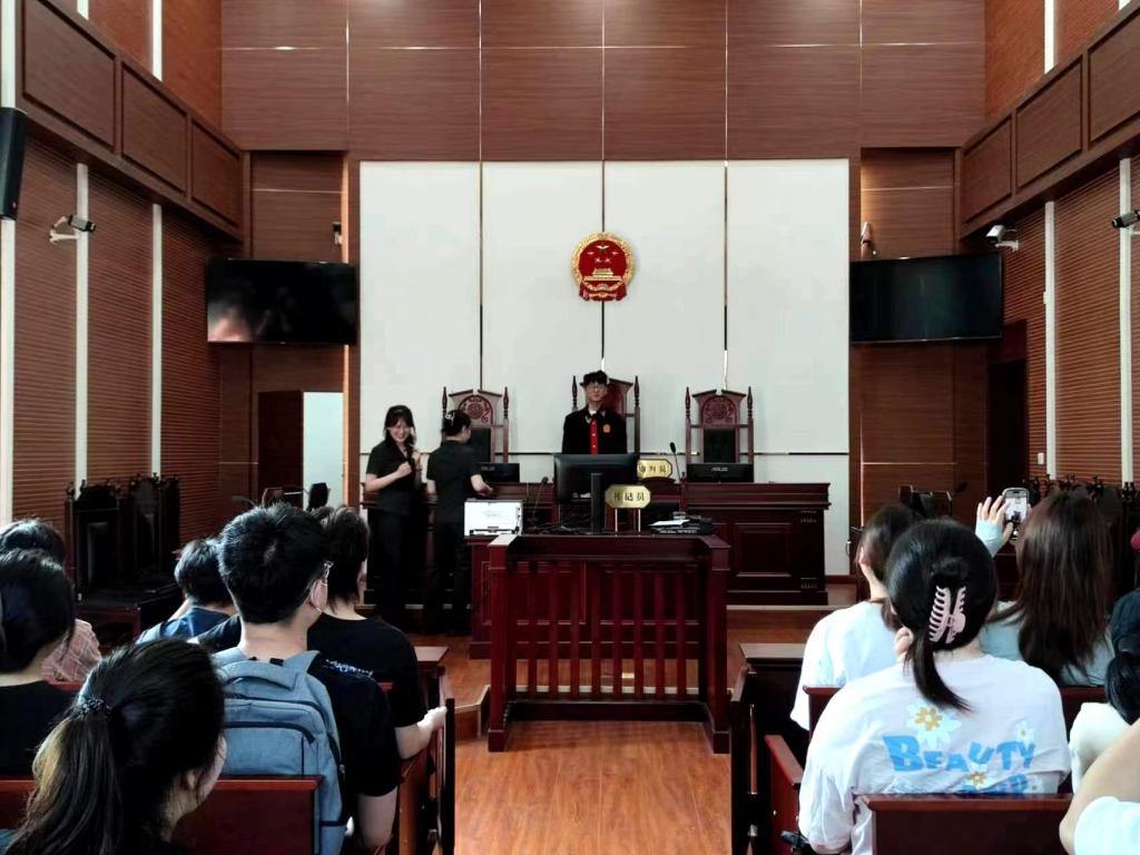 走进法庭,法官带领同学们参观了五里界人民法庭。在立案大厅,法官着重为同学们介绍了江夏区资源分布、环保法治工作的成就和经验及环资审判法庭的责任与使命。在大审判庭,法官为同学们详细介绍了庭审过程中原告被告、诉讼代理人、审判长、审判员、书记员等角色及案件从立案到结案的诉讼程序、审判流程等。随后,法官带领同学们进行了一场法庭审判模拟体验,同学们积极进行角色体验。365代表身着法袍、手握法槌、坐上法椅,沉浸式体验案件审理时的法庭威严、法律精神和法治力量。在文化展厅,法官为同学们耐心解说生态保护经典案例,同学们深刻理解环境资源审判修复性司法理念、认真学习绿色司法的新知识。通过法庭参观,同学们更深刻理解了习近平法治思想和生态文明思想,更透彻把握了书本上的全面推进依法治国和建设社会主义生态文明的国家重大决策。同学们纷纷感概:“法治中国和美丽中国建设既需要法律保驾护航,也需要大家共同努力。我们要认真学习理解掌握书本理论知识,熟练运用理论知识,结合现实需要,积极投身到国家建设中去。”