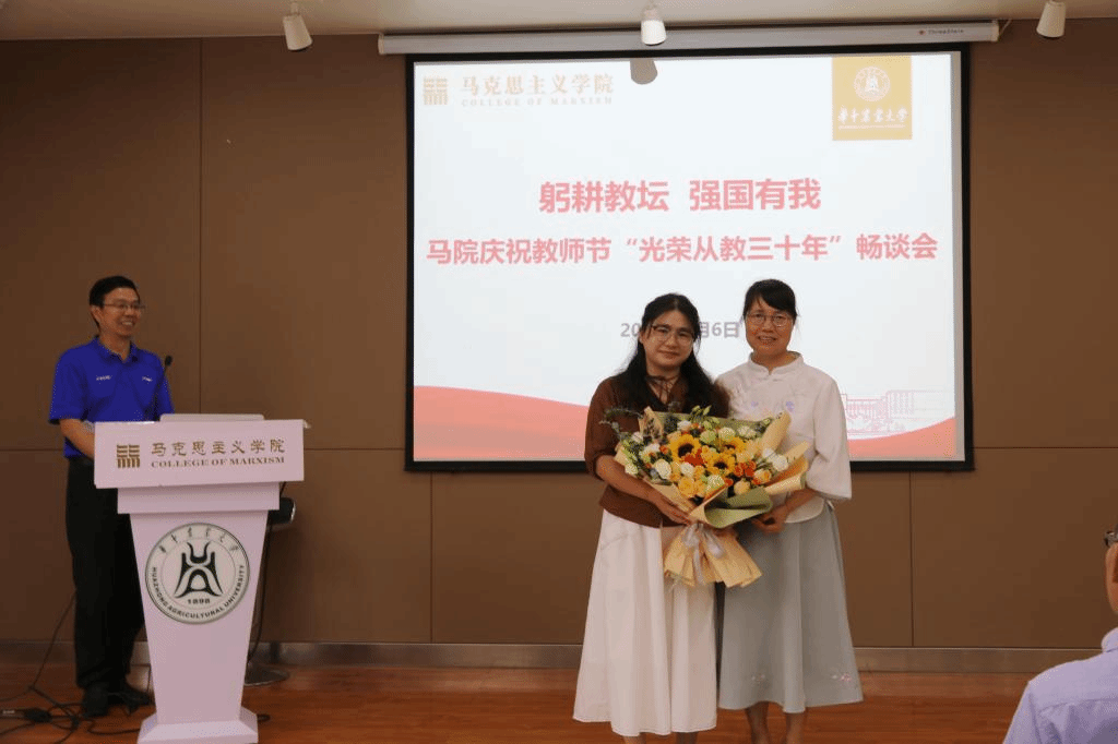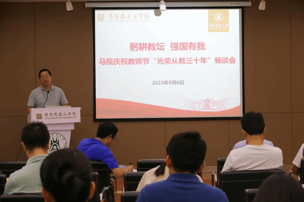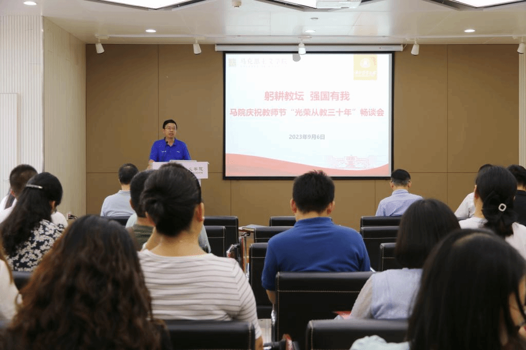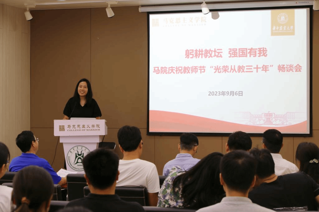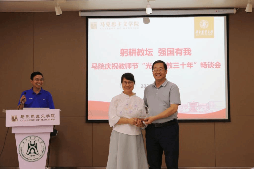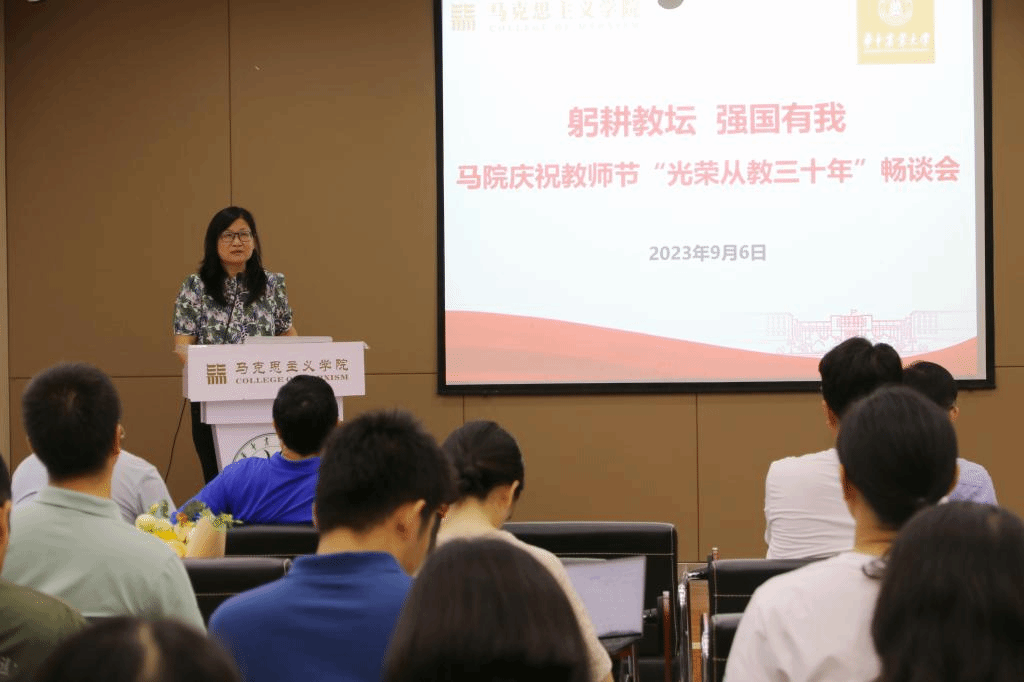 活动伊始,全体教师重温了习近平总书记在学校思想政治理论课教师座谈会上的讲话精神,进一步强化思政课教师肩负的使命与责任。学院为从教三十年教师同书琴颁发纪念奖牌,向同老师三十年来对教育事业的坚守和付出致敬。梁伟军院长代表学院向全体教师表示诚挚的节日问候和衷心的感谢。他谈到,作为思政课教师,要勇担使命责任,保持身心健康,潜心课程育人,投入科学研究,热心社会服务,做好立德修身。他希望广大教师要“以功成不必在我”的情怀与“功成必定有我”的担当,继续为学院建设、学校发展、民族复兴与强国建设贡献力量。