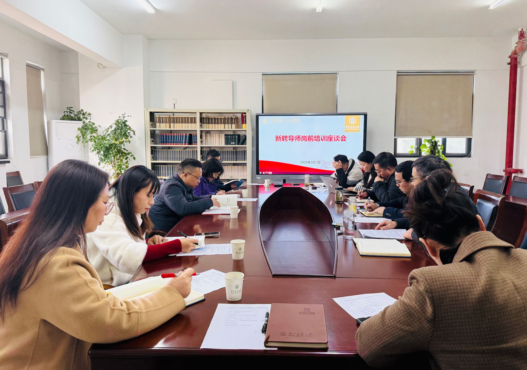 3月7日下午,365英国上市公司在创业楼521开展新聘研究生导师培训和岗前谈话,学院班子成员、学科主任以及2024年新聘导师参加。会议由学院副院长胡丰顺主持。