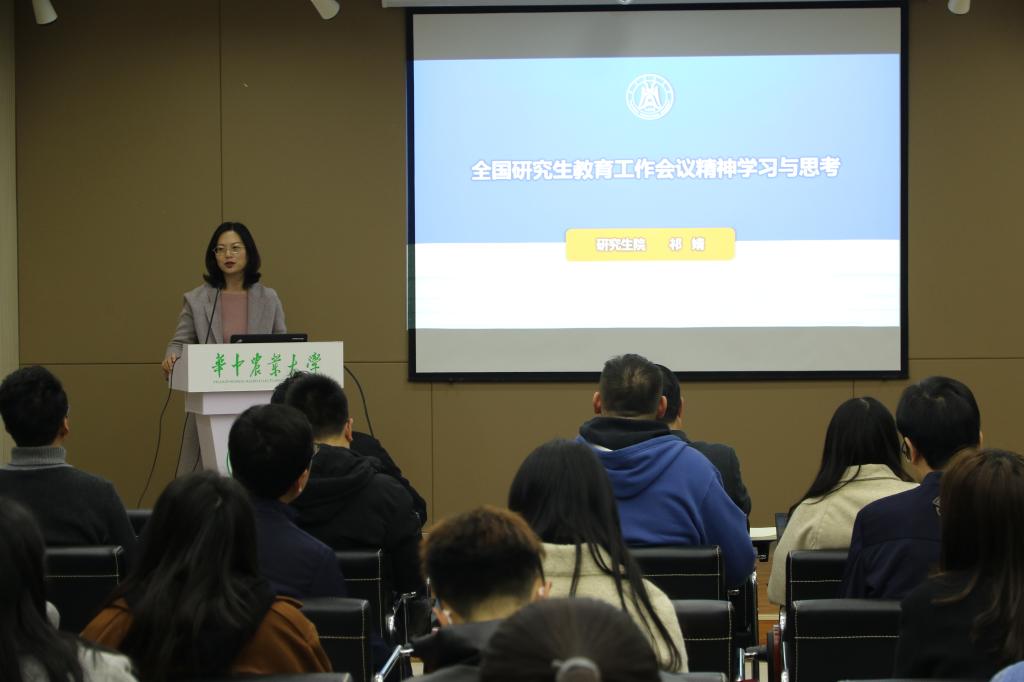 研究生院祁婧老师在会上作了关于“全国研究生教育工作会议精神学习与思考”的报告。她从如何看待研究生与研究生教育、如何看待研究生培养质量问题、为什么要开全国研究生教育工作会议、研究生教育会议解决了哪些问题、教育部落实会议精神都有哪些布署和研究生院的一些初步想法这六个方面来展开。她系统地谈了自己对研究生教育工作会议精神的思考,不仅梳理了研究生教育所取得的成绩,也剖析了目前我校研究生教育所存在的问题,并针对不同的问题拟采取相应的举措。报告最后,祁婧老师希望365英国上市公司能够走出一条具有华农特色的研究生培养路线。