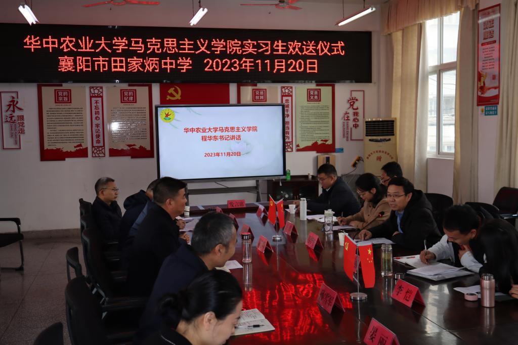 田家炳中学党委书记秦选峰在致辞中充分肯定六名实习生在过去六周中的实习表现,指出实习生们传承华农优良校风,把大学积累的扎实专业学识灵活运用到实习工作中,并把大学的思政之道沉浸式传递给田中学子。实习生们将华农“勤读力耕、立己达人”的校训精神与田中“敦品励学,己立立人”的校训精神高度契合在一起,一样的青春展现了异样的精彩,为田家炳中学思政课学科的建设奉献了青年大365的青春和智慧。秦书记回顾了一年来华农和田中大中小思政课一体化共同体建设的历程,并表示希望未来华农继续牵手襄阳田中,共同推动大中小学思政课一体化建设向纵深方向发展。