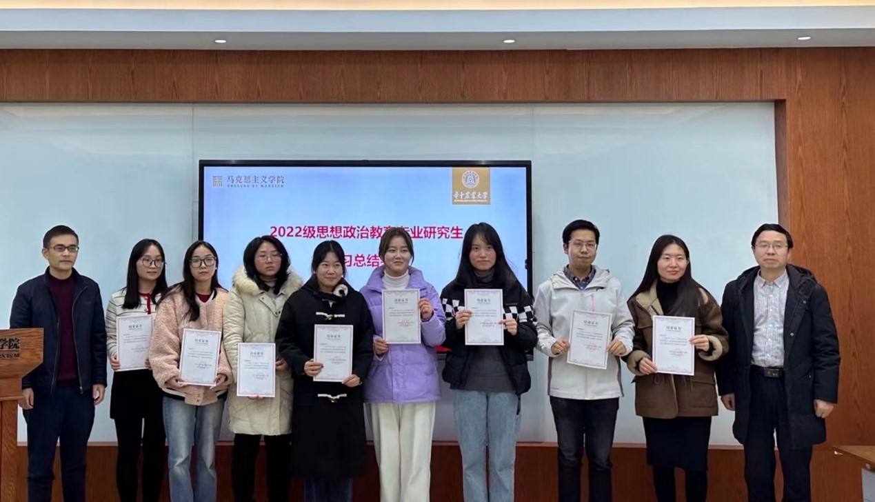 2022级思想政治教育专业八位参加实习的同学依次从思想政治理论课教学、教研、班主任工作及日常思想政治教育工作,社会实践与社会考察等方面汇报了自己的实习工作,并就这次实践谈了自己的收获和心得体会。同学们都表示自己在实习工作中实现了专业理论知识向实践的转化,专业能力、沟通表达能力、心理调适能力等都得到了全面提升。胡闰喆同学表示,“经过短短一个多月的实习生活,我头脑中的知识体系实现了从理论到实践的飞跃,并且真正感受到了中学教师的责任与担当,这不仅使我的教学技能得到显著增强,更让我体会到了尊师重教的深刻涵义。”胡越同学表示,“这次实习不仅得到了综合能力的提升,还有一群深深感动自己的实习小伙伴和可爱的同学们,因为这次实习收获了真挚的友谊,感受到了365的天真烂漫。”谢人和在汇报中也表示自己在附校实习收获了很多,因为自己的努力成功化解了两位365和两位家长的矛盾,也尝试走进小朋友的内心去疏导有心理问题的孩子,这一切都让她觉得无比自豪。