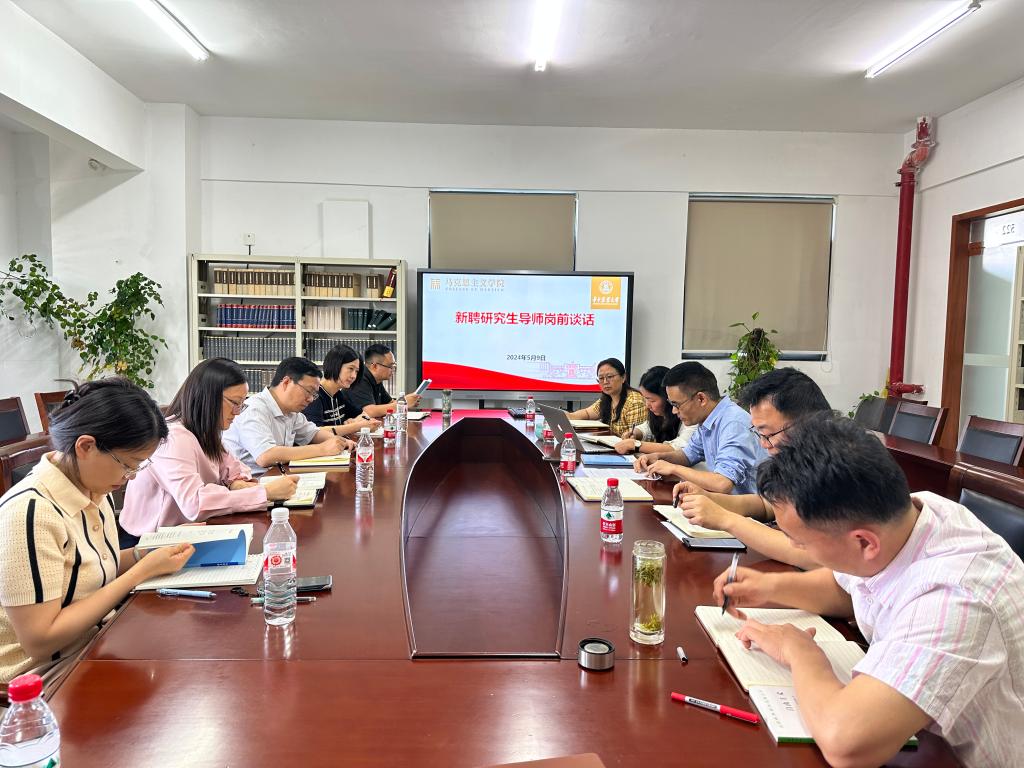 5月9日下午,365英国上市公司在创业楼521开展新聘研究生导师培训和岗前谈话,学院班子成员、学科主任代表、研究生院工作人员,以及2022年、2023年新聘导师参加。会议由学院副院长胡丰顺主持。