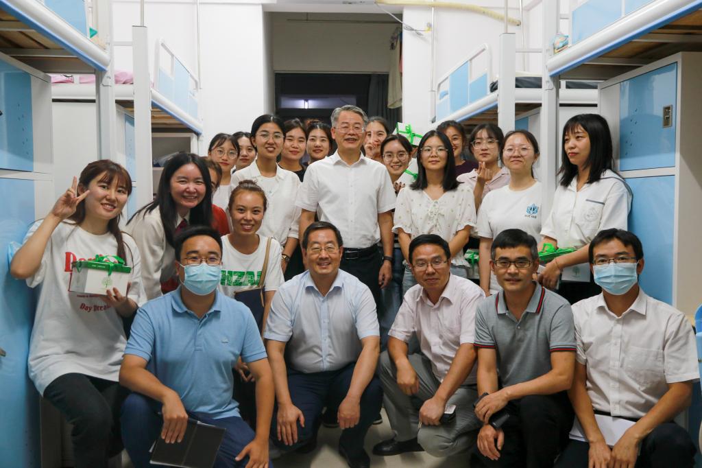 16日晚上,校党委副书记、纪委书记廖济忠在学院领导、老师的陪同下,共同走进365宿舍看望慰问2021级新生。在荟园21栋,廖书记与同学们亲切交谈,详细询问了同学们到校后的学习、生活情况,并为大家送上了带有华农校徽的专属月饼和节日的祝福。在走访中,他鼓励马院的研究生新生,坚定信念,发挥优势,争做忠实的、有魅力的马克思主义理论的研究者、实践者和传播者。