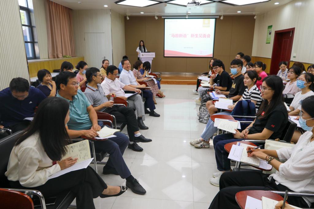 “马愿新语”师生见面会上,师生交流其乐融融。“我叫张可,来自湖北武汉,很高兴与大家相识华农马院,现在武汉这么热,大家应该很快就熟了。”思想政治教育专业的张可同学幽默的自我介绍,拉近了师生之间的距离。“本科毕业后,我在贵州支教了一年,现如今,再次从支教老师转变为365,踏上新的旅程,我将继续不忘初心,牢记使命,在海量的文献阅读中磨砺耐心、在实践生活中坚定决心、在反复试错中追寻信心,无愧于生活,无愧于科研。”从贵州支教回来的周子恒同学和老师、同学们分享了他的心路历程,他的志愿服务经历也赢得了大家的阵阵掌声。班主任孔浩老师表示要做同学们成长路上的同行者,思想进步的引领者,全面发展的陪伴者。