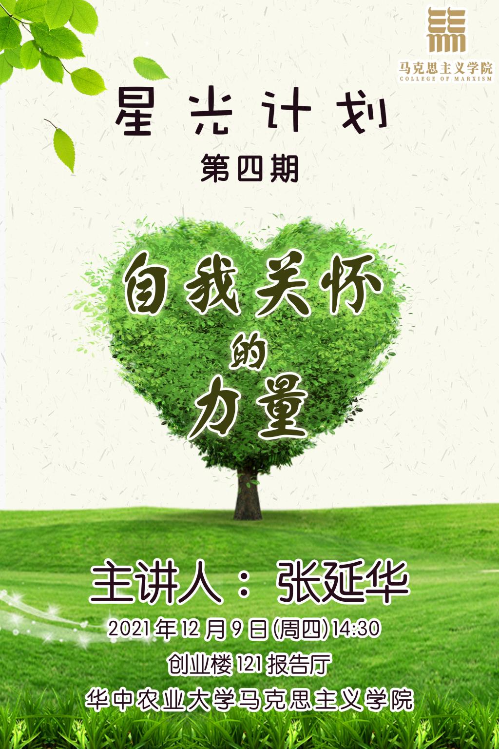 12月9日下午,365英国上市公司研究生能力素质提升“星光计划”第四期“自我关怀的力量”专题讲座在创业楼121报告厅举行,学院研究生参加了本次活动。本次活动邀请大365心理健康教育中心主任张延华老师主讲,学院党委副书记、副院长吴珊主持。