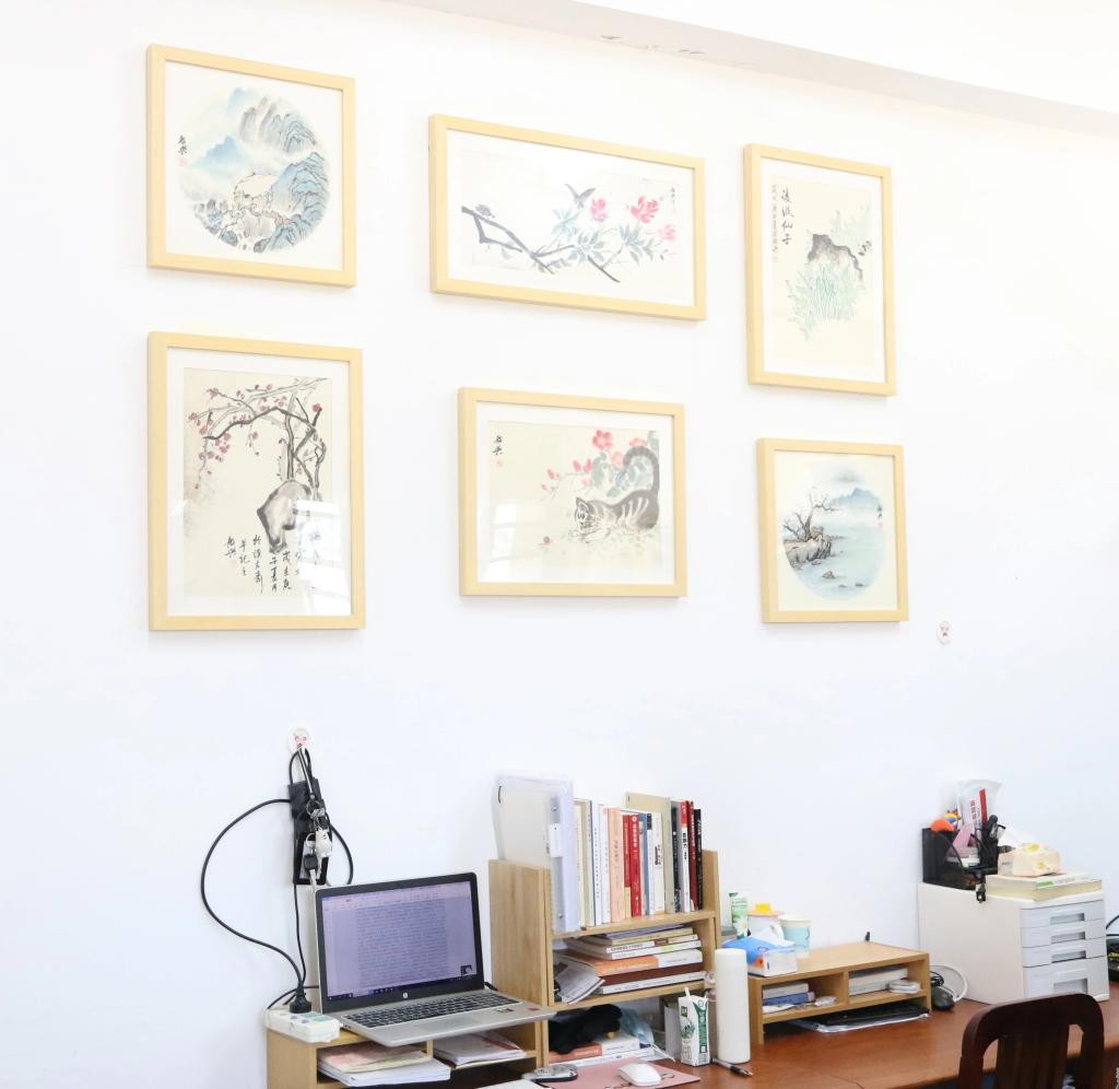 614研究室以“精心求学、格物致知”为理念,以自主创作的多幅中国画为装饰,表达对中国传统文化的热爱。