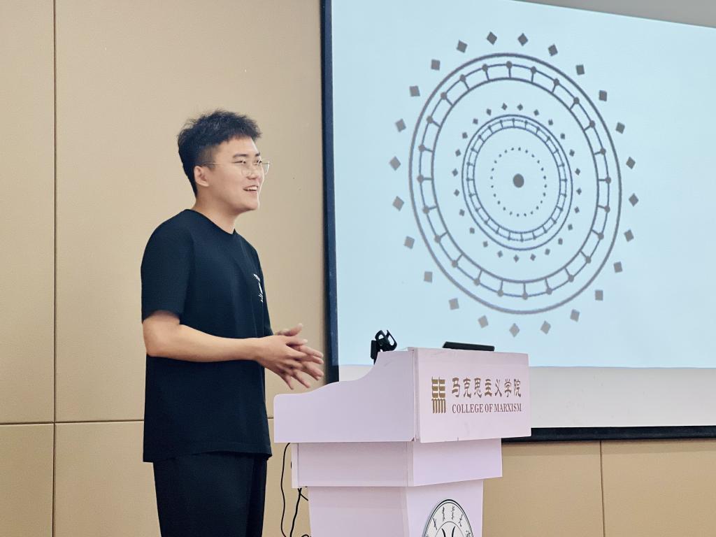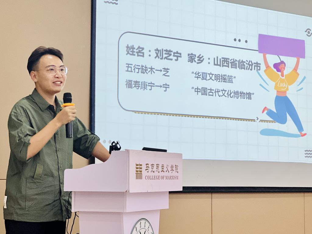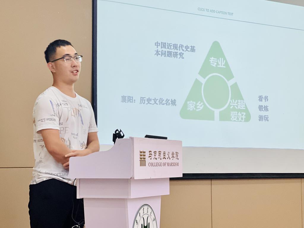2022级马克思主义基本原理专业姜子岳同学作新生代表发言,他以“星光不负赶路人,江河眷顾奋楫者”激励新生在学业上蓄力奋发,“青春无问西东,岁月自成芳华”,希望大家在奋斗中留下无悔的青春。随后,新生们作了“花样”自我介绍。蔡彤分享了在工作中的所获所感;朱富煜以轻松幽默的话语介绍了自己外冷内热的性格;胡越对三年的研究生生活进行了清晰的规划;谢人和表达了重返校园的紧张与欣喜;郭林昊借用“江畔何时初见月,江月何时初照人”一句表达时光易逝、珍惜当下。