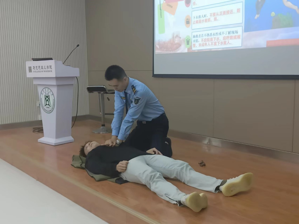 在此次消防安全的培训和演练中,扈教官通过生动、幽默地讲述方式和细心指导增强了同学们溺水救人、防震救灾、消防安全的实操能力,提高了同学们的消防安全素养。