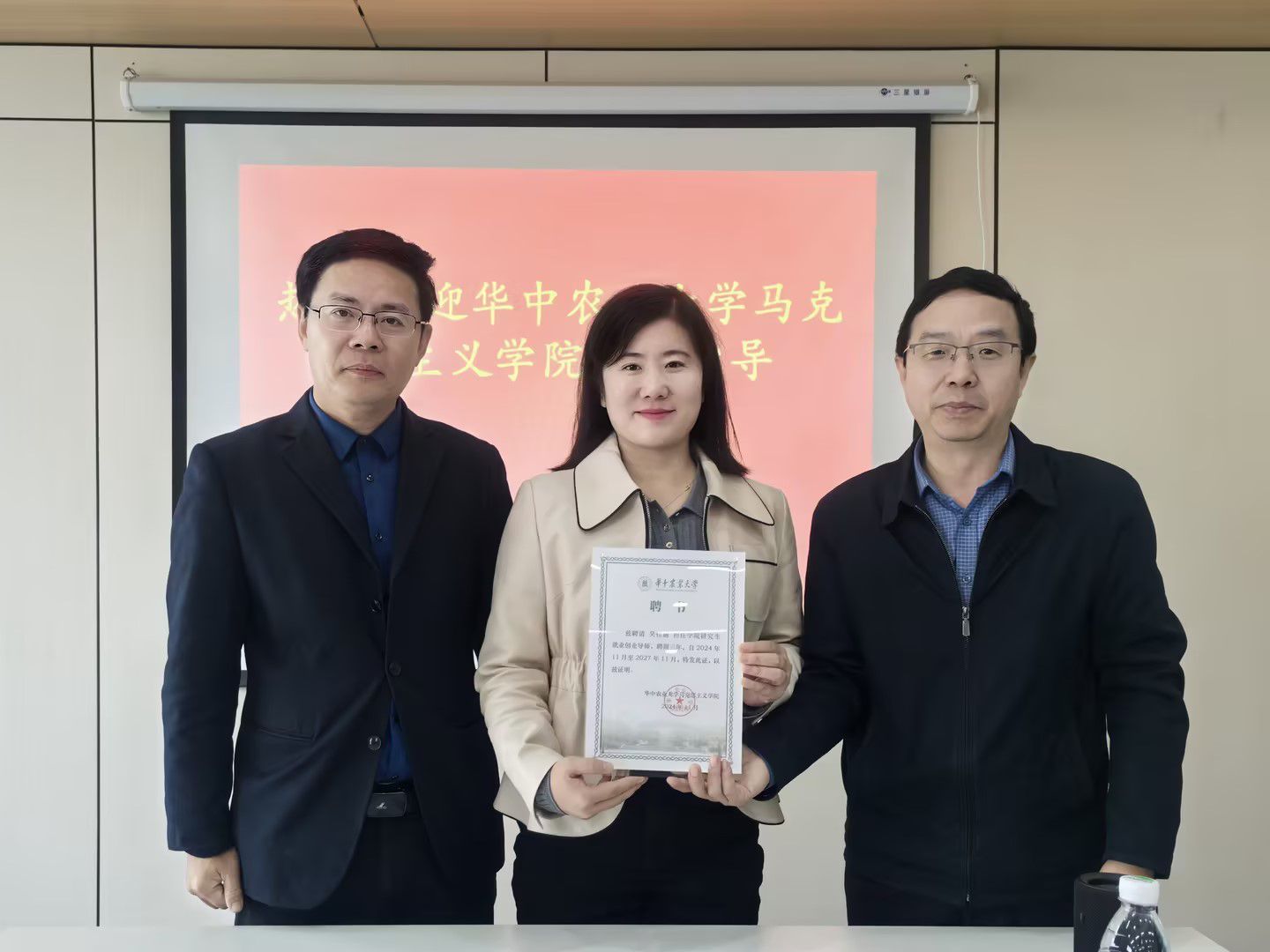 (为校友吴佳丽颁发聘书 通讯员 史玉豪 摄)