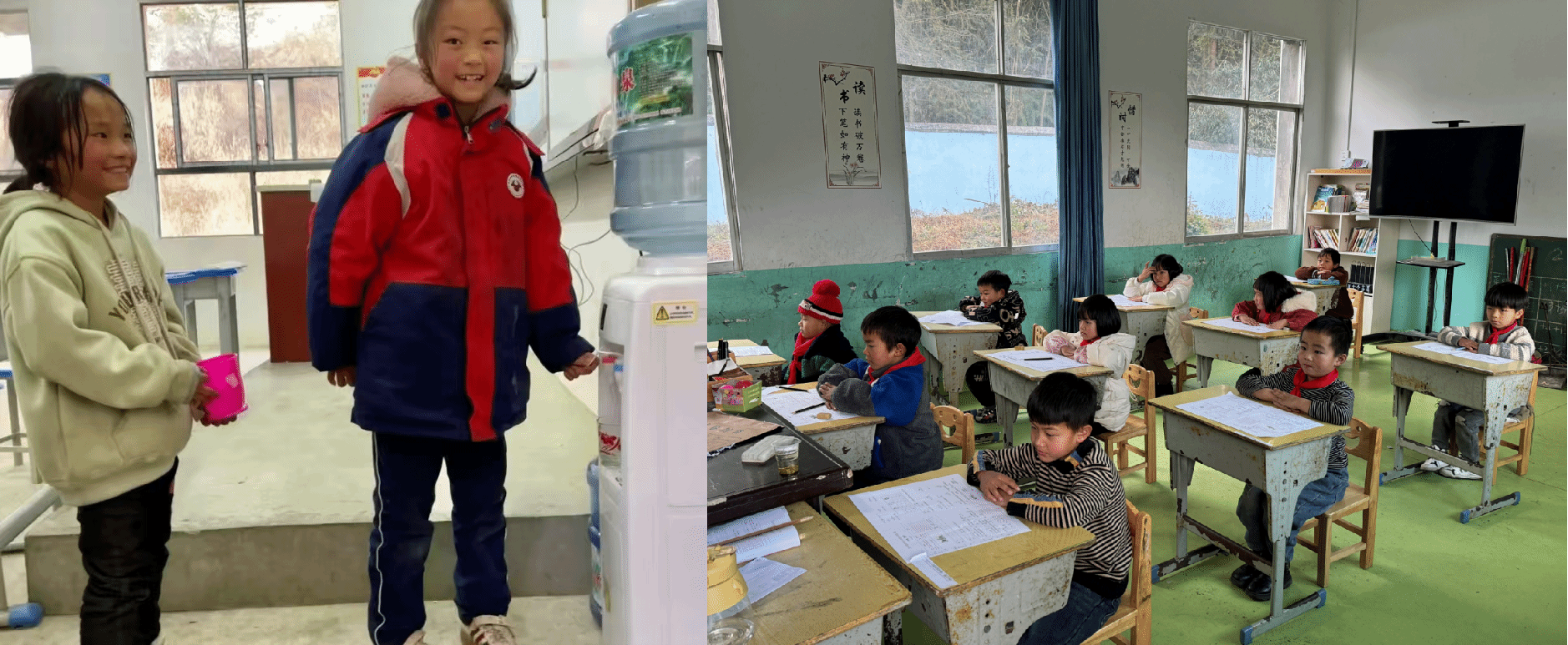 孩子们喝上了纯净水,教室在冬日开了暖风