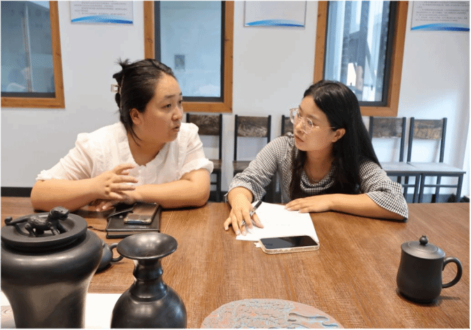 (易雯雪同学在调研中与访谈对象交流)
