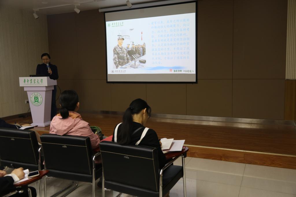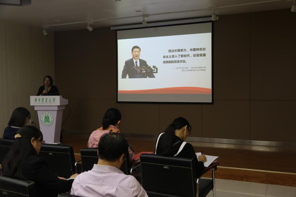 2019年10月24日下午,学院在创业楼121报告厅举行“不忘初心、牢记使命”主题教育之纲要“精读精讲” 活动,由刘思老师和王蓉老师分别从中国特色社会主义进入新时代和把人民军队建设成世界一流军队两个专题讲解习近平新时代中国特色社会主义思想。学院全体师生参会,会议由陈贵华老师主持。