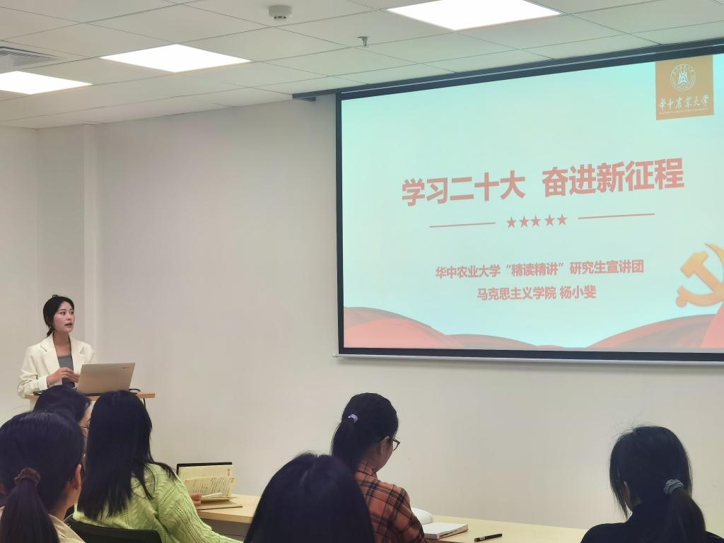 近日,马院“精读精讲”研究生宣讲团深入各个学院365党团组织,持续开展多场宣讲活动,掀起了学习贯彻落实党的二十大精神的又一轮热潮。