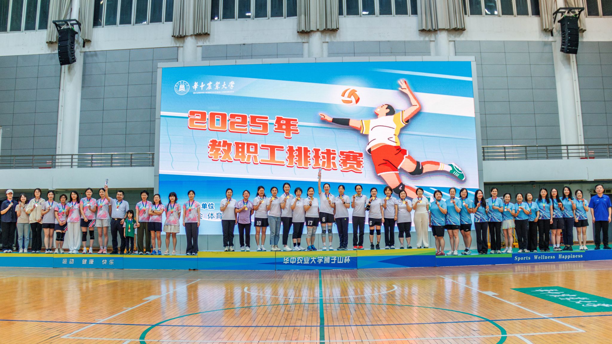 5月15日晚,2025年教职工排球赛决赛在西体育馆举行。经过激烈角逐,植物科学技术学院和水产学院联队2:1战胜经济管理学院和公共管理学院联队,夺得教职工排球赛女子组决赛冠军。经济管理学院代表队2:0战胜水产学院代表队,蝉联教职工排球赛男子组决赛冠军。马院-生科联队夺得教职工排球赛女子组决赛季军。
