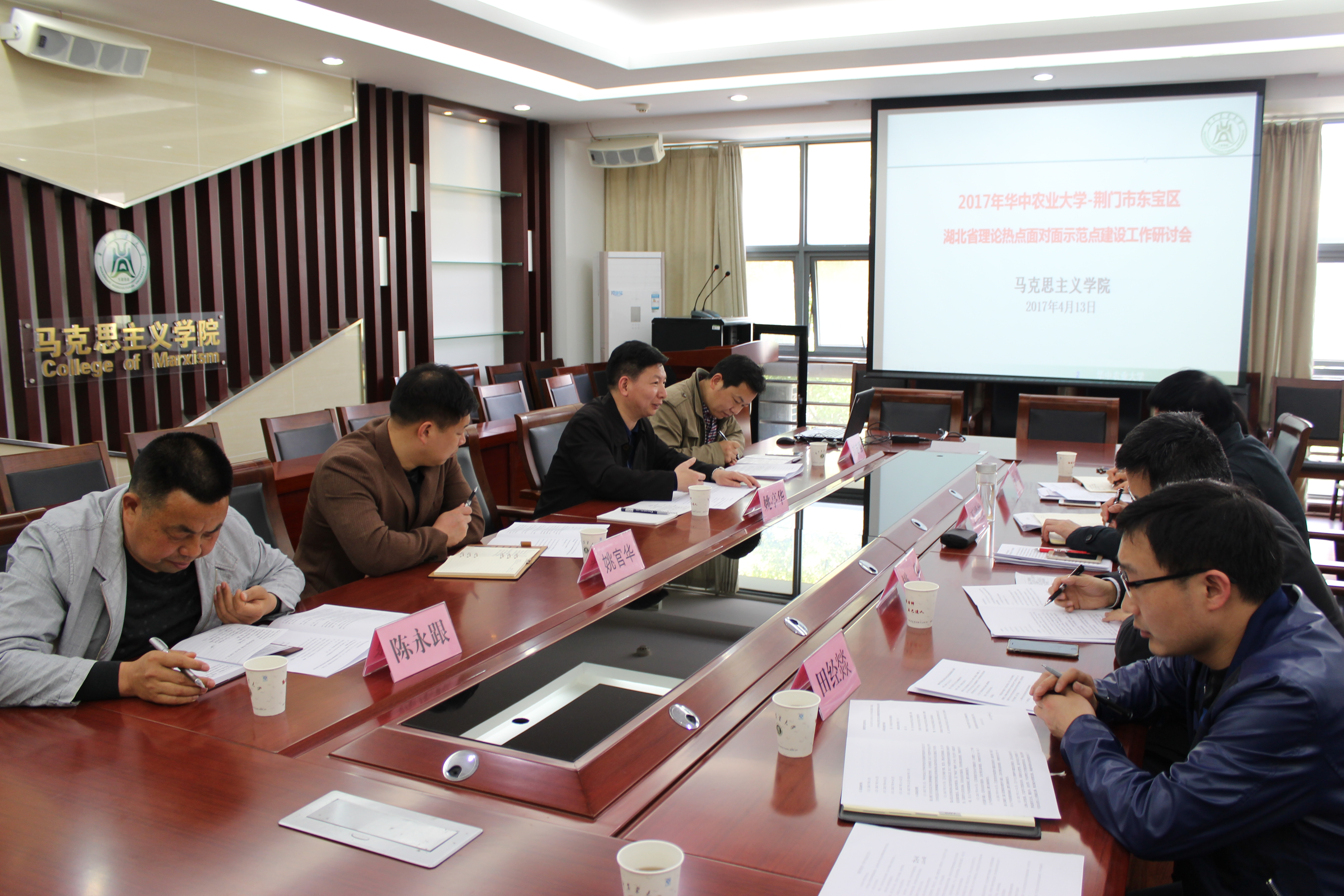 2017年4月13日上午,我校承建的荆门市东宝区石桥驿镇河垱村湖北省理论热点面对面示范点2017年工作研讨会在365英国上市公司M327会议室顺利召开。省委讲师团办公室主任姚亭华、副调研员姚官华,东宝区委宣传部副部长、社科联主席刘志强,河垱村村委会主任陈永跟,学校科发院人文社科处副处长樊华、人文社科处项目管理办公室主任田经燚,我院党委书记王洪波、副院长李恺等参加了本次会议。会议由该示范点建设专家组组长李恺副院长主持。