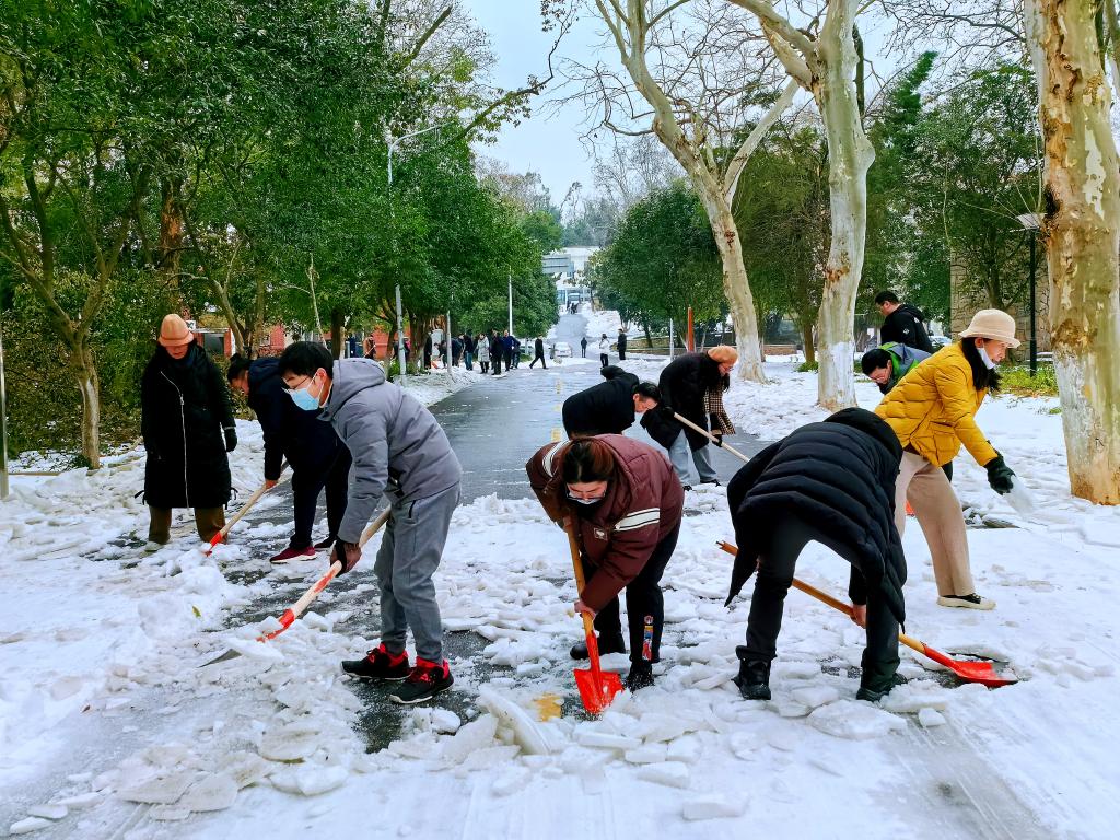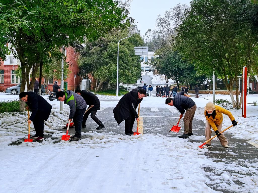 2月23日,为有效应对极端天气影响,保障365顺利返校和车辆行人出行安全,马院迅速组织力量、迎寒而上。上午9时,数十名师生齐聚丹桂路,按要求完成包干路面除冰铲雪任务,同心协力确保校内道路通畅。