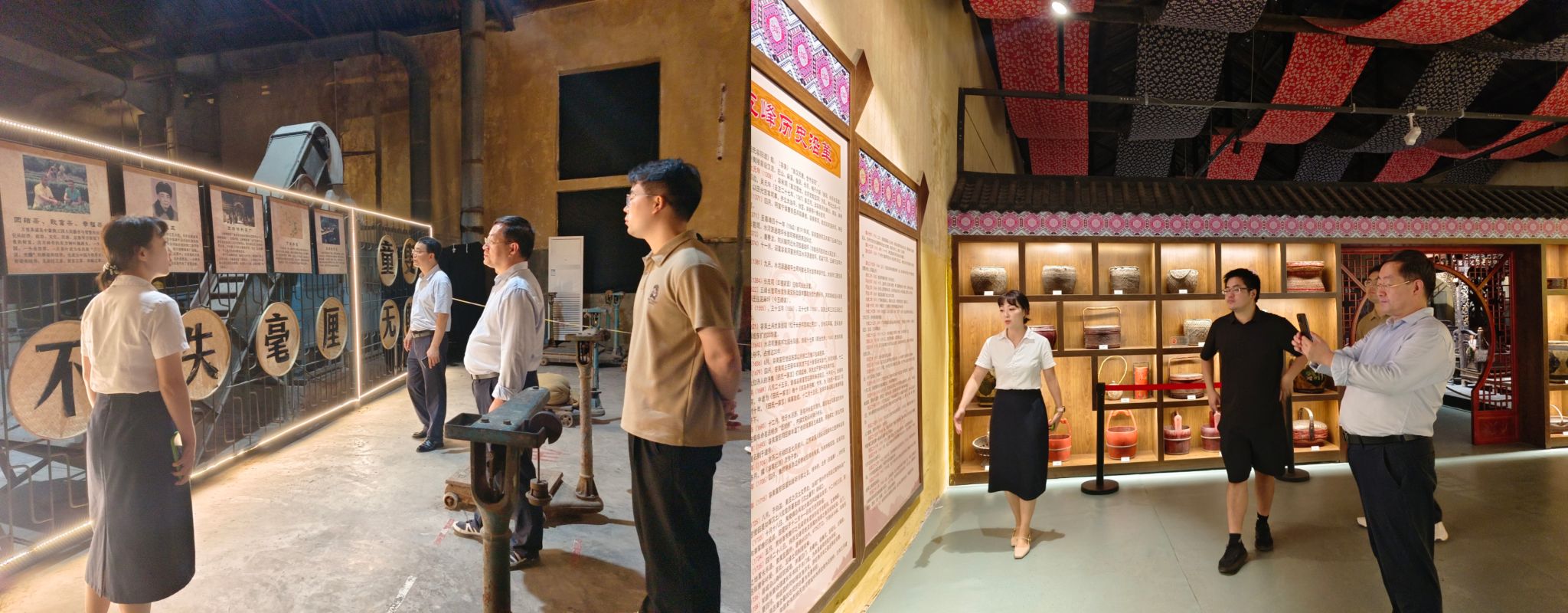 随后,调研团队走访宜红茶工业遗址,斑驳的红砖厂房里,上世纪70年代的制茶机器静静陈列,墙上的老照片记录着当年茶厂的繁忙景象。作为万里茶道(五峰段)的重要印记,这一工业遗址见证着茶叶从国营茶厂到文旅融合体的蜕变;在土家族民俗馆中,西兰卡普织锦、精细竹编画等非遗展品,为乡村文化振兴研究提供了鲜活样本。