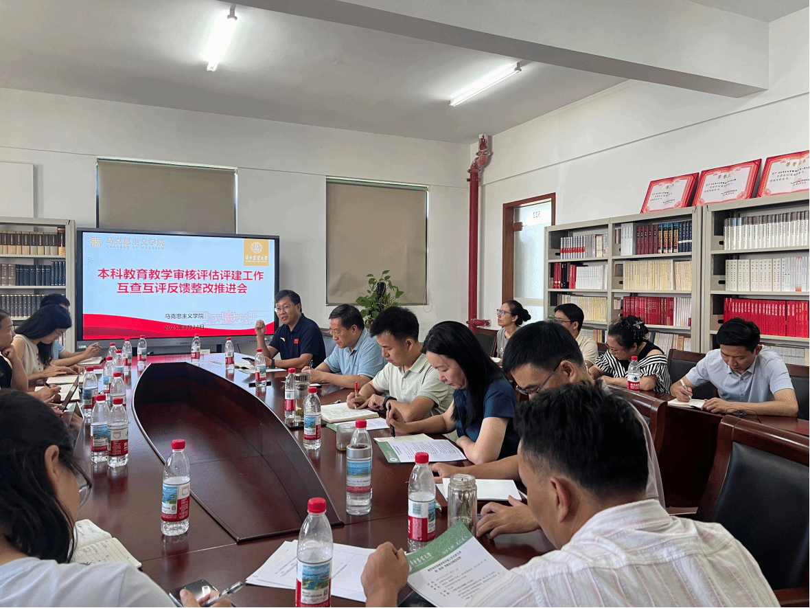 会上,副院长霍军亮首先将学校评估领导小组材料组的反馈意见进行了通报。材料检查组对学院6门课程、21门次考核材料、10门课程教学材料及10项重点任务落实及支撑材料进行了检查,学院在材料准备方面总体较为扎实,教学文档、课程资料等基本齐全,但在部分材料的规范性和细节处理上仍需进一步完善。他提出下一步以上问题在9月中旬前集中时间对标对表再进行大核查,处理好细节问题。党委副书记吴珊就学院教学文化展示工作,从“理论铸魂·经典领航、师者匠心·育人风采、知行足迹·实践真知、青马思享·青春成长”四个板块设计理念做了阐述。