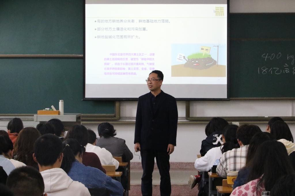 四教A204教室,武文军结合“粮食安全”这一事关国计民生的热点话题,从“是什么”“为什么”“怎么做”等方面深入分析了粮食安全的重要性,以及我国当前面临的困难挑战和具体解决路径。清晰易懂的讲解,生动详实的案例,积极活跃的互动,让课堂氛围轻松融洽,让听课师生收获满满。