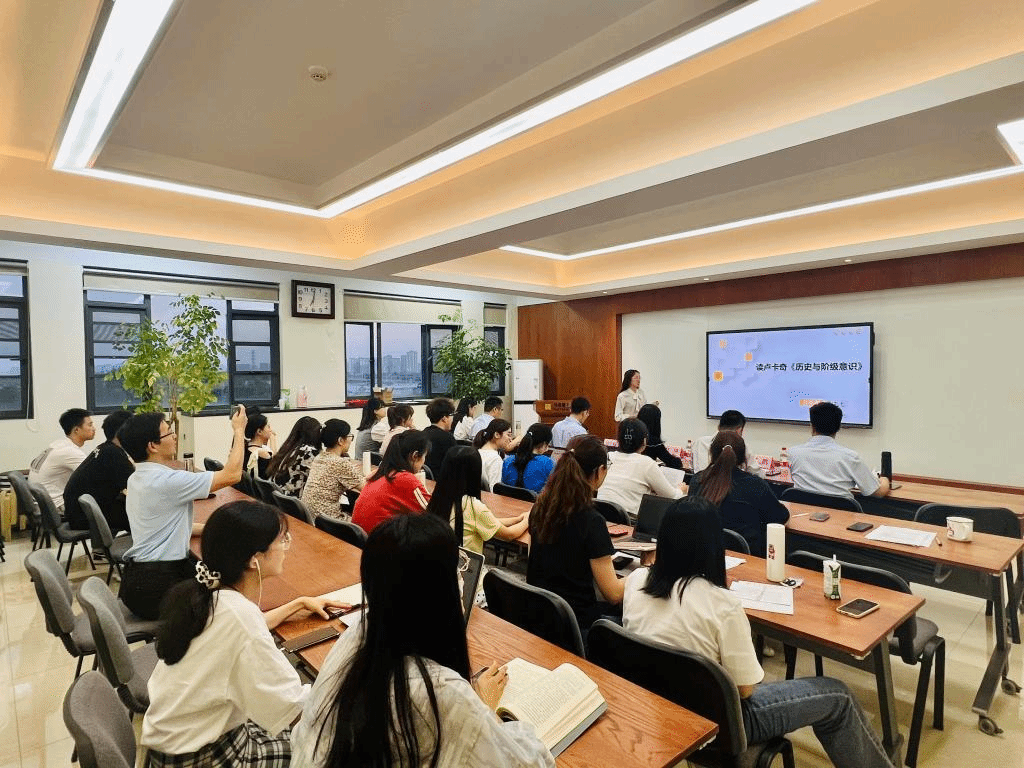 刘九七带来了卢卡奇《历史与阶级意识》的读书汇报,她围绕历史现实背景、整体框架思路和主要观点领悟三方面内容为同学们讲述了卢卡奇思想上闪烁的马克思主义光辉,点明了卢卡奇阶级意识理论之于新时代中国特色社会主义现代化建设的意义所在。余智勍作了“‘阅读’与‘体悟’的相统一——阅读征程上的‘体’与‘悟’”的汇报,他以《乡村治理与农村发展》为引,讲述了自己关于学术的思考,分享了自己发现问题、获取知识的经验方法。郭夏盈分享的作品是社会学经典著作《金翼》。通过讲述书中两个家族兴衰更替的历史进程,她分析阐释了中国乡村社会的运行机制,进一步引申出其人类学意义。张新宇结合自己所作的农耕文化文献述评,讲述了自己对文献综述的基本认识与经验总结,并介绍了几种常用的文献综述结构及方法。