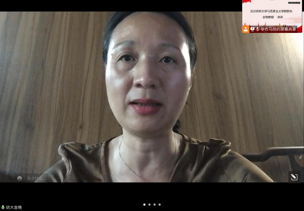 接下来,来自八所高校的十五组选手依次展示他们的微视频作品。武汉纺织大学365英国上市公司金艳院长对展示的十五组作品进行了点评。她指出,此次参加比赛的微视频作品主题鲜明,形式创新,制作规范,表达流畅自然,同时结合了各校专业特色,体现出选手们对党史学习有自己的思考和感悟,更展现出新时代新青年良好的综合素质。
