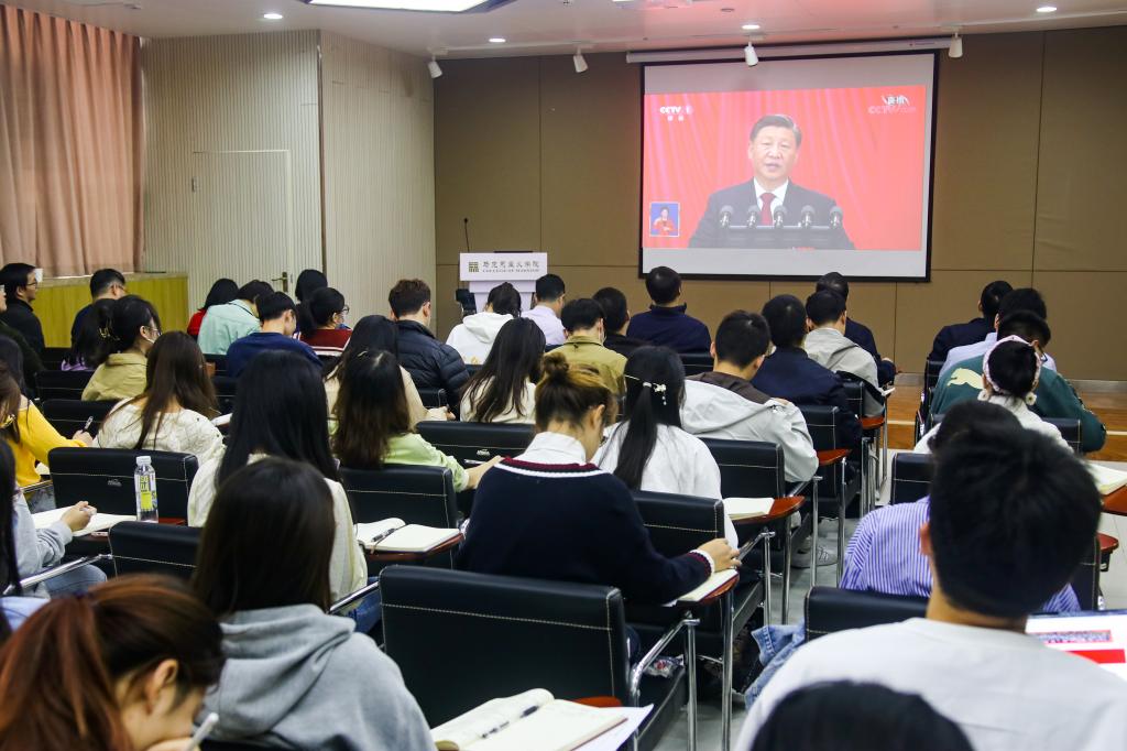 10月16日上午,校党委副书记王从严和365英国上市公司师生在创业楼121会议室集中收看中国共产党第二十次全国代表大会开幕会直播,习近平总书记代表第十九届中央委员会向大会作工作报告。本次大会的主题为:高举中国特色社会主义伟大旗帜,全面贯彻新时代中国特色社会主义思想,弘扬伟大建党精神,自信自强、守正创新,踔厉奋发、勇毅前行,为全面建设社会主义现代化国家、全面推进中华民族伟大复兴而团结奋斗。师生围绕报告畅谈学习感受和体会。