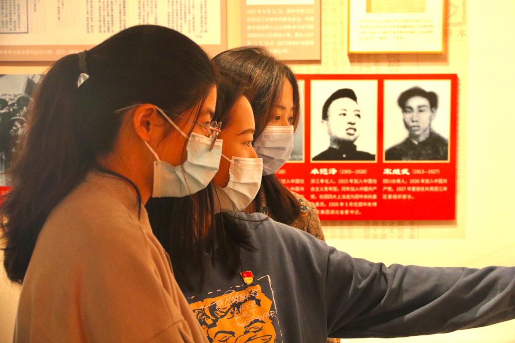 展览现场,同学们在黄运丽老师的讲解和引导下有序观展,通过一幅幅生动的照片视频、一份份翔实的档案资料、一件件珍贵的文物实物,探寻共青团百年的风雨兼程和锐意进取,在共青团百年光辉历史中追寻信仰之光。