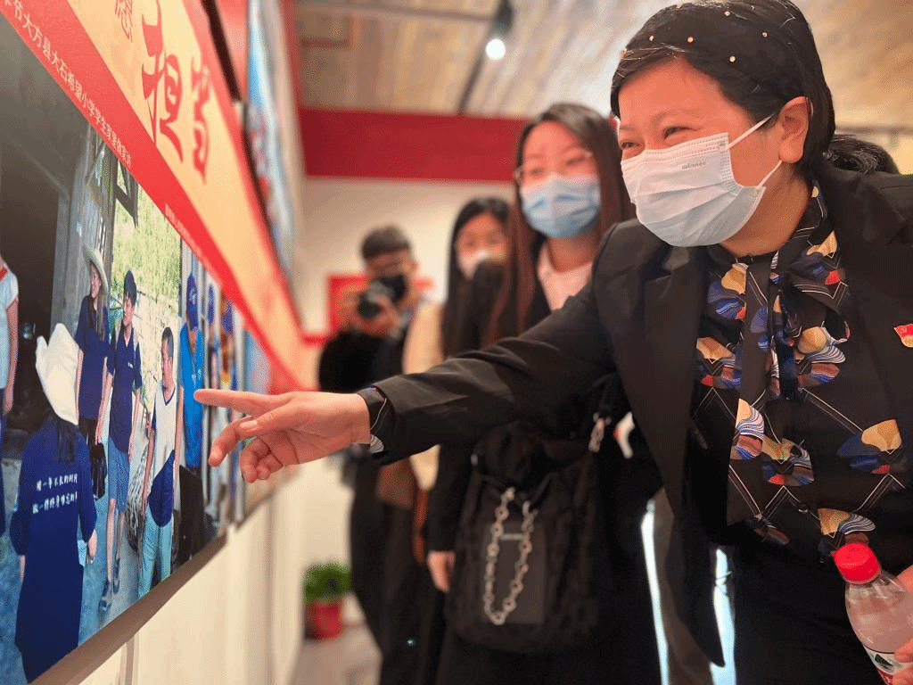 参观时,同学们还发现了我校“本禹志愿服务队”在贵州山区支教的身影,学院党委副书记吴珊现场介绍了服务队的基本365,并结合习近平总书记在庆祝中国共产主义青年团成立100周年大会上的重要讲话精神,鼓励大家积极向榜样学习,扎根基层,在祖国需要的地方贡献青春力量。精彩的讲解让同学们沉浸在百年团史的光辉历程中,现场师生交流讨论积极,学习氛围浓厚。