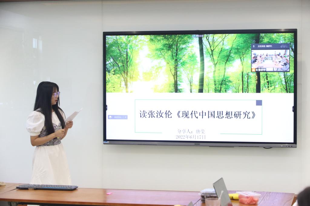 (唐莹对学术经典《现代中国思想研究》进行读书汇报 马瑞摄)