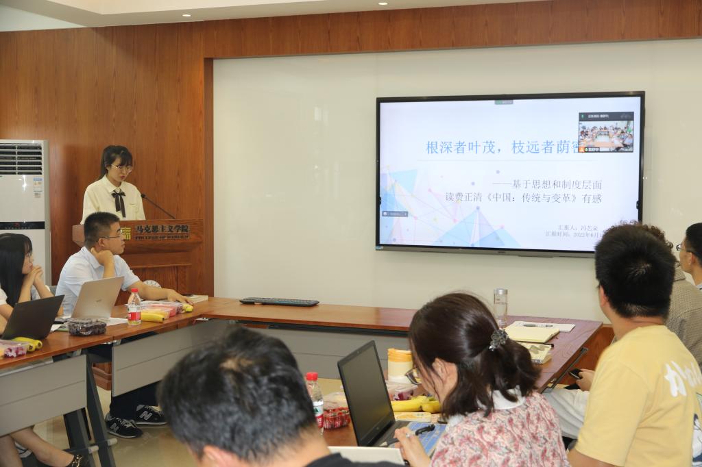 (冯艺朵对学术经典《中国:传统与变革》进行读书汇报 马瑞摄)
