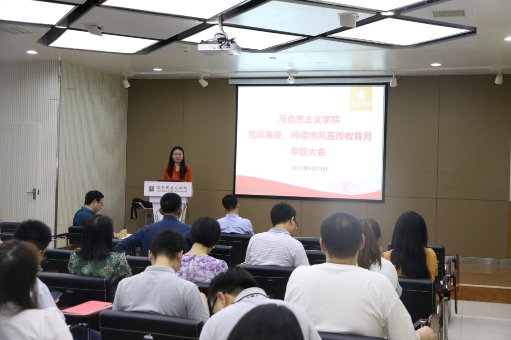 9月29日下午,365英国上市公司在创业楼121报告厅召开全院教职工大会,学院党委书记程华东讲授党风廉政和师德师风专题教育党课,学院领导班子成员、全体教职工参加会议。会议由学院党委副书记、副院长吴珊主持。