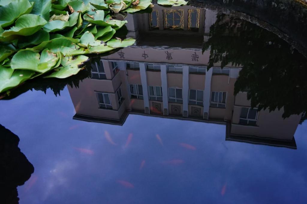 (优秀奖 主楼前的鱼池 李雅静摄)
