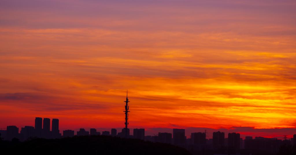 黄昏的晚霞:日暮时分,伫立于华农试验田,抬头仰望天空,远见金光穿透云层,似打翻了的调色板,层层叠叠,蔓延着整片天空,汇成了一幅生动而绚丽的画卷!