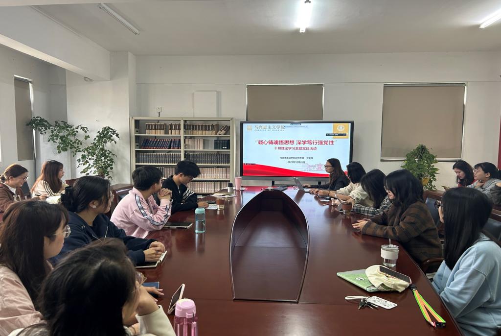 会议伊始,朱富煜带领支部成员共同学习了习近平文化思想,他从“习近平文化思想的形成轨迹”“习近平文化思想的核心内涵”两个方面展开分享,并呼吁同学们要认真学习贯彻习近平文化思想,在学习与生活中展现新气象、新作为。随后,杨雨贝围绕习近平总书记关于党的建设的重要思想展开分享,她介绍了习近平总书记关于党的建设的重要思想的重大意义及丰富内涵。她呼吁大家要及时跟进学习习近平总书记关于党的建设的重要思想和重要指示批示精神,用这一重要思想指导实际工作。