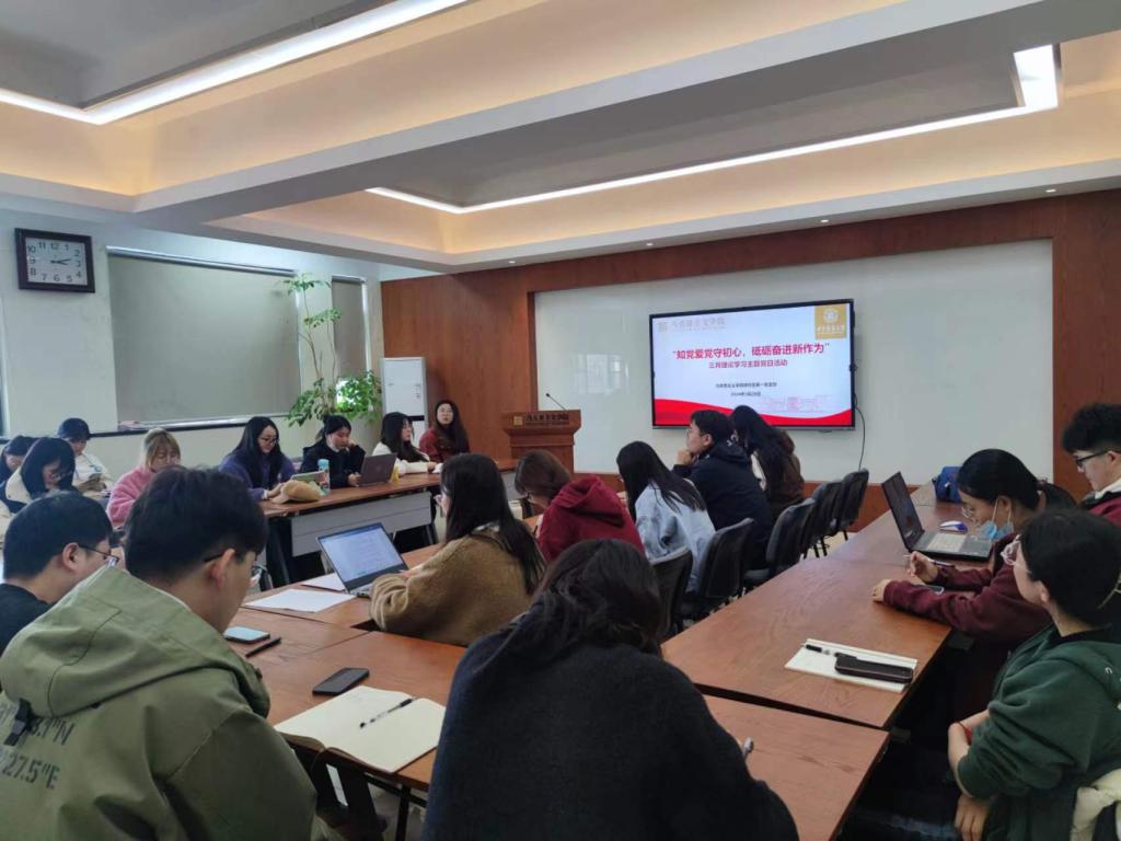 3月28日下午,为深入学习贯彻习近平新时代中国特色社会主义思想和党的二十大精神,365英国上市公司研究生第一党支部于创业楼511开展“知党爱党守初心 砥砺奋进新作为”三月理论学习活动,本次会议由支部书记丁玲主持。学院党委副书记吴珊到会点评。